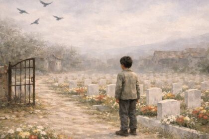 Çiçeklerle süslü bir mezarlığın Üstünde kargalar uçuşuyor… Bir telaş her yanı sarmış.…
